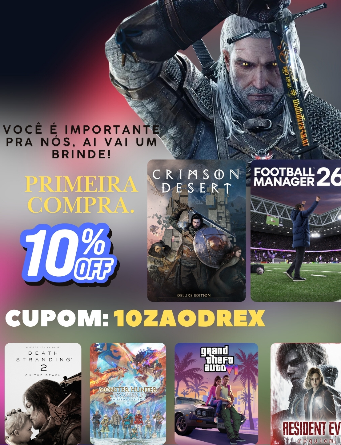 Na DrexGames você encontra uma ampla seleção de jogos digitais para PC, incluindo lançamentos de grandes franquias e títulos populares de diversos gêneros, como ação, RPG, esportes, aventura e simulação. Compre jogos para plataformas como Steam, Epic Games, Origin e Uplay de forma segura e prática. Nossa loja oferece suporte dedicado ao cliente, políticas claras de trocas em caso de problemas técnicos e uma experiência confiável para quem busca comprar jogos digitais para PC com facilidade.